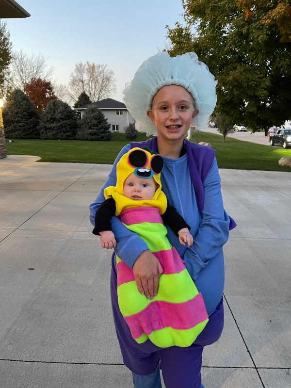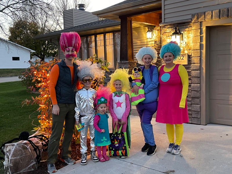 Kelsey and Kearney spent a few days in NE once we got back from our trip. We love when they are around for Halloween, so a themed costume was necessary! Good thing Kelsey has the creative touch because I sure don’t 😁. These Trolls had so much fun!